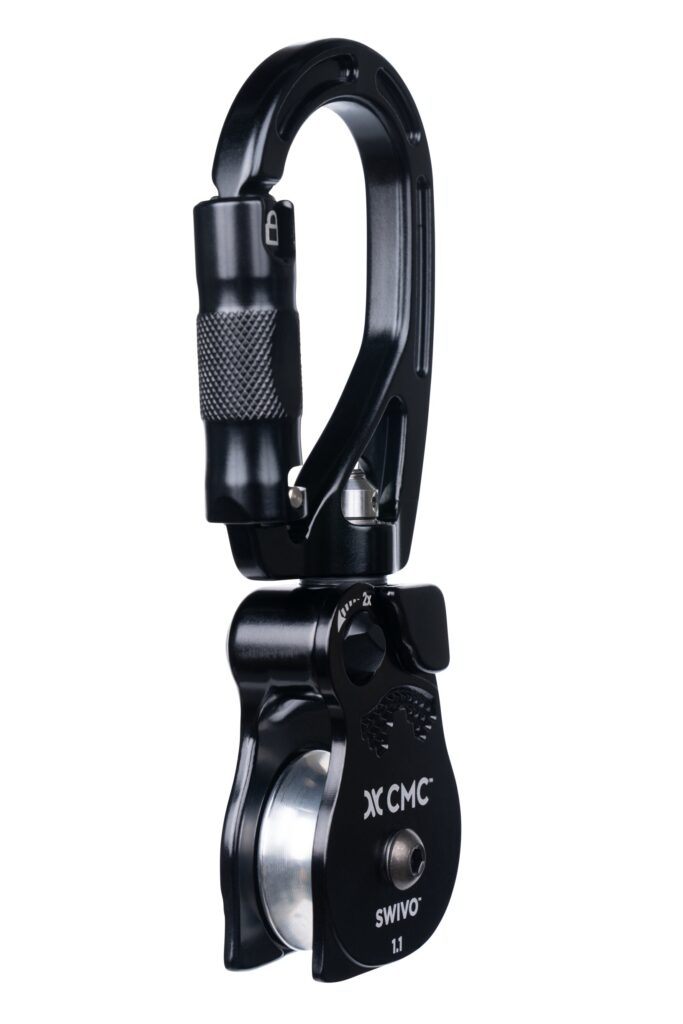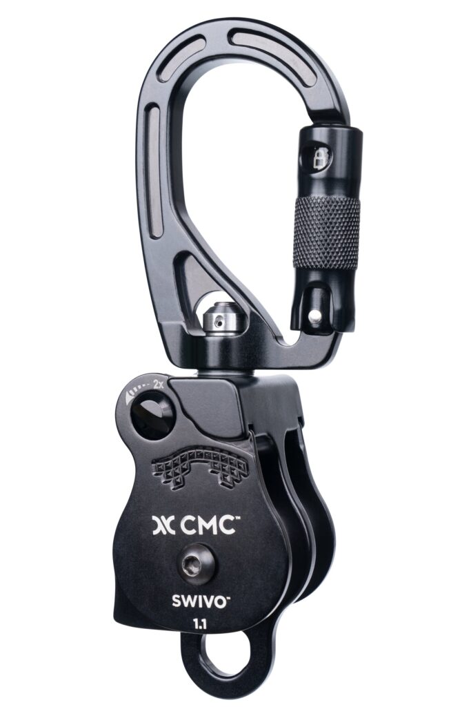 Ergonomic and efficient, SWIVO can be operated one-handed using the double-detent button, pivoting sideplate, and auto-locking gate. It excels in M/A systems and works well with high anchors, tripods, and redirects. Teaming up with Rock Exotica, CMC is offering SWIVO in a single sheave model (NFPA/CE) and a double sheave model (NFPA). The oval carabiner frame is designed for high strength and meets NFPA Technical Use. SWIVO is patented, made in the USA, and brought to you by two companies committed to quality and service. For more swivel pulley options, check out our ProSwivel Pulley line.