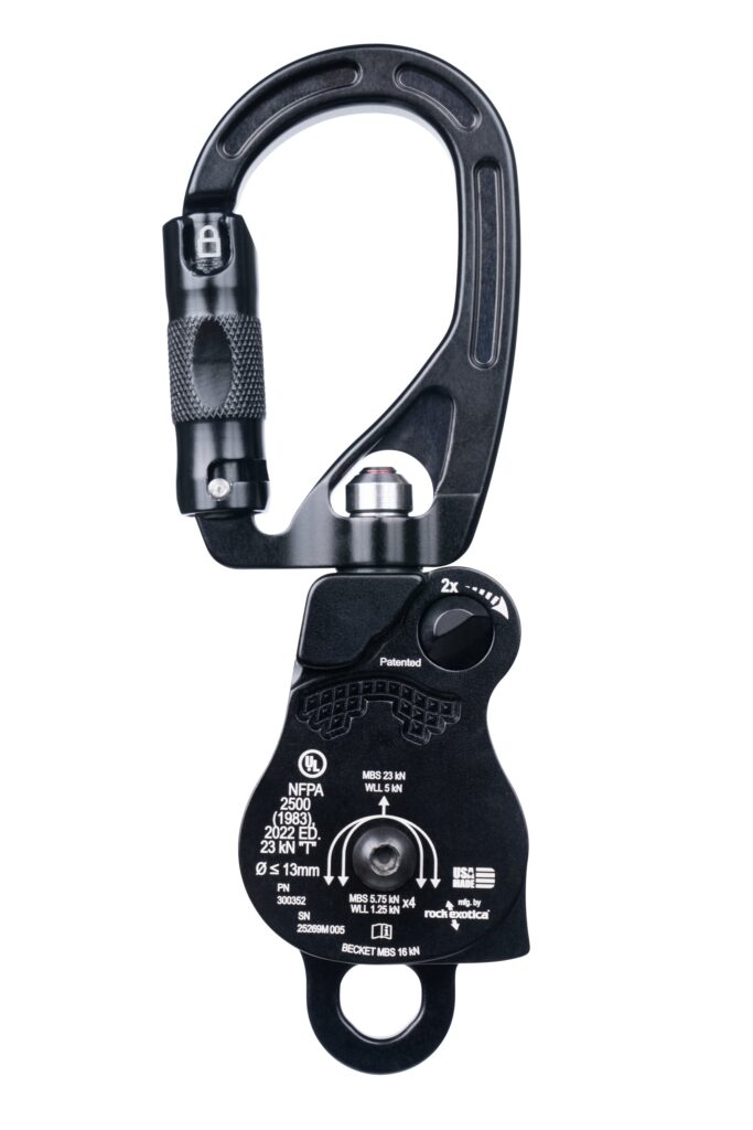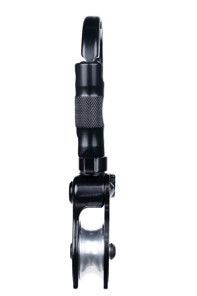 • Combines a swivel, pulley, and oval carabiner in a single device