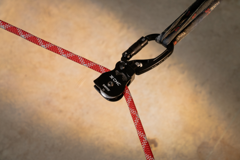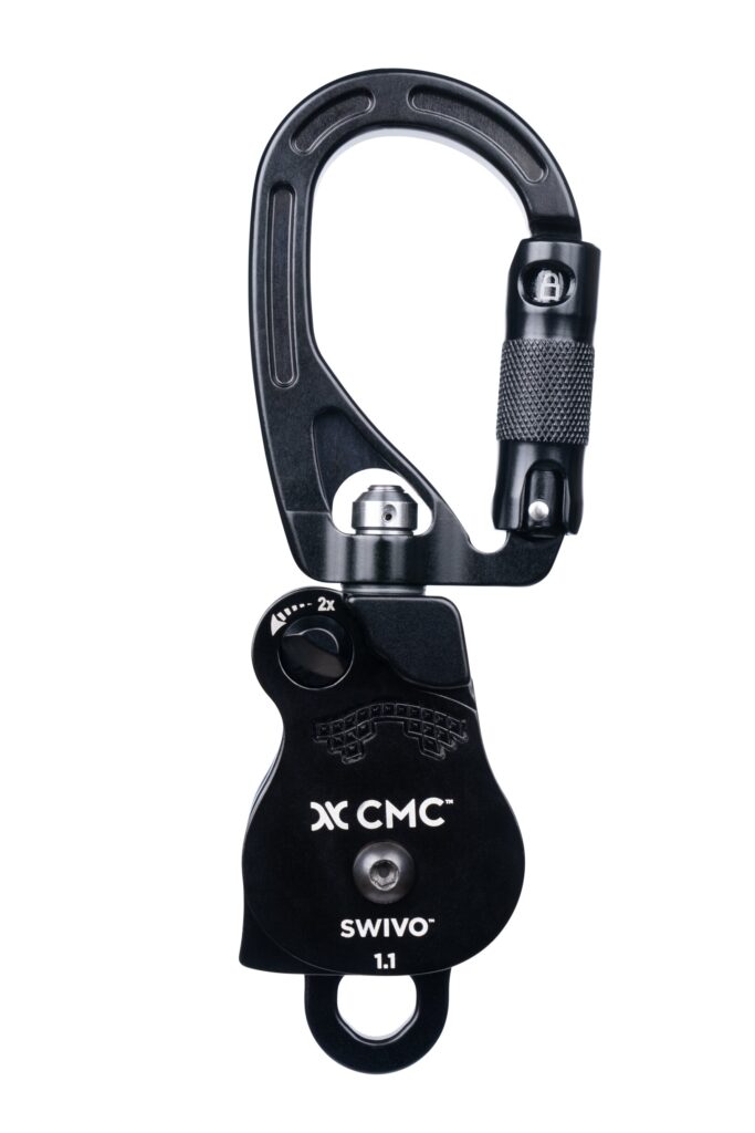 SWIVO combines a swivel, pulley, and oval carabiner in a single device for building compact and efficient rope systems.