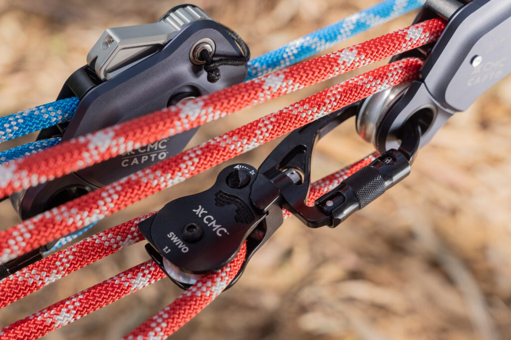 SWIVO combines a swivel, pulley, and oval carabiner in a single device for building compact and efficient rope systems. Its rounded carabiner frame clips easily into the CAPTO becket and other wide attachment points, improving load distribution and reducing the risk of binding. SWIVO’s integrated components allow it to simplify rigging, maximize travel, and create seamless transitions. When paired with the CAPTO, SWIVO enables rapid conversion from a 3:1 to a 5:1, increasing ease and efficiency for haul teams.
